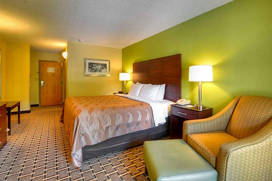 The spacious suite provides air conditioning, a tea and coffee maker, a seating area and a TV with cable channels.